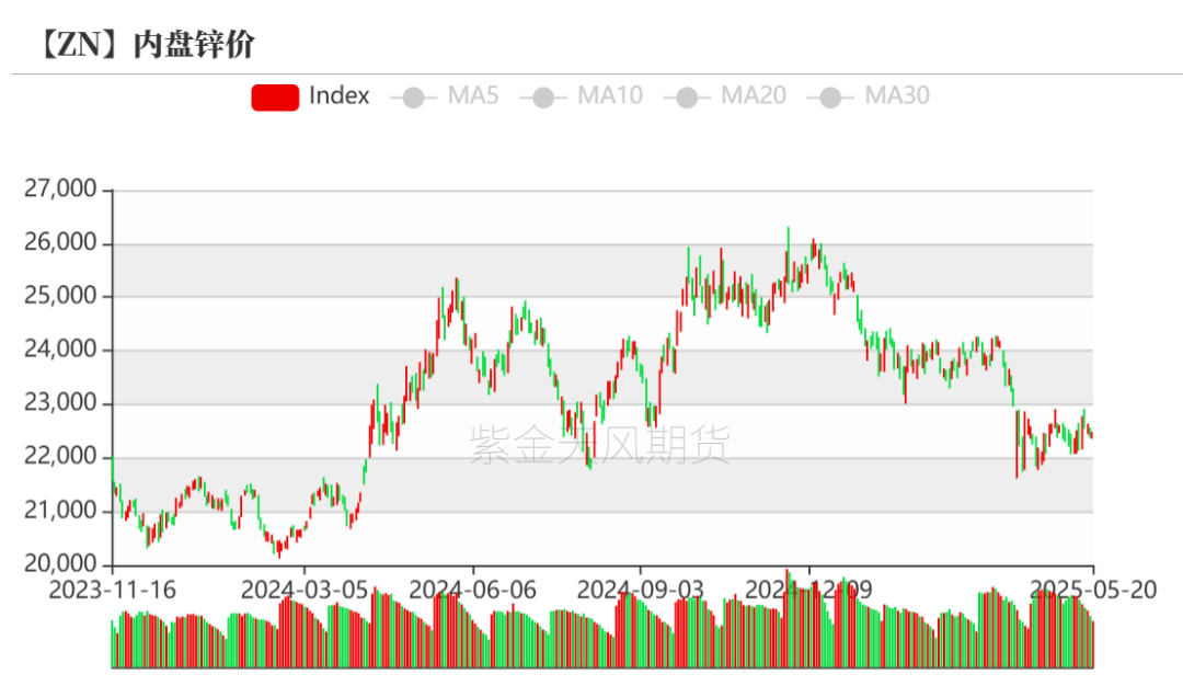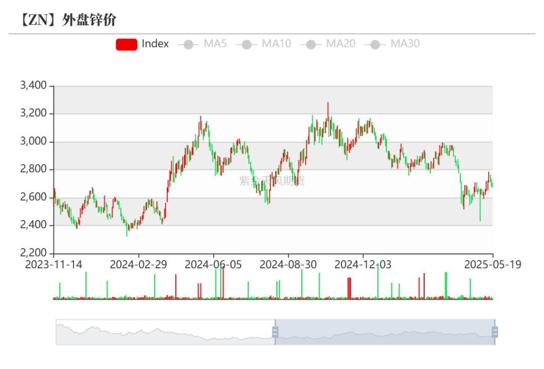 外盘维持c结构,LME锌0-3贴水于-30美金/吨运行。