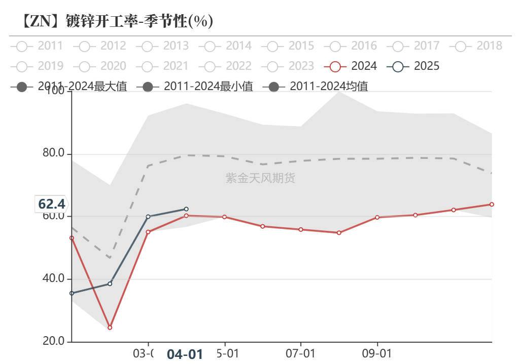 合金开工率:偏空 锌合金行业开工为60.85%,环比下降0.65%。