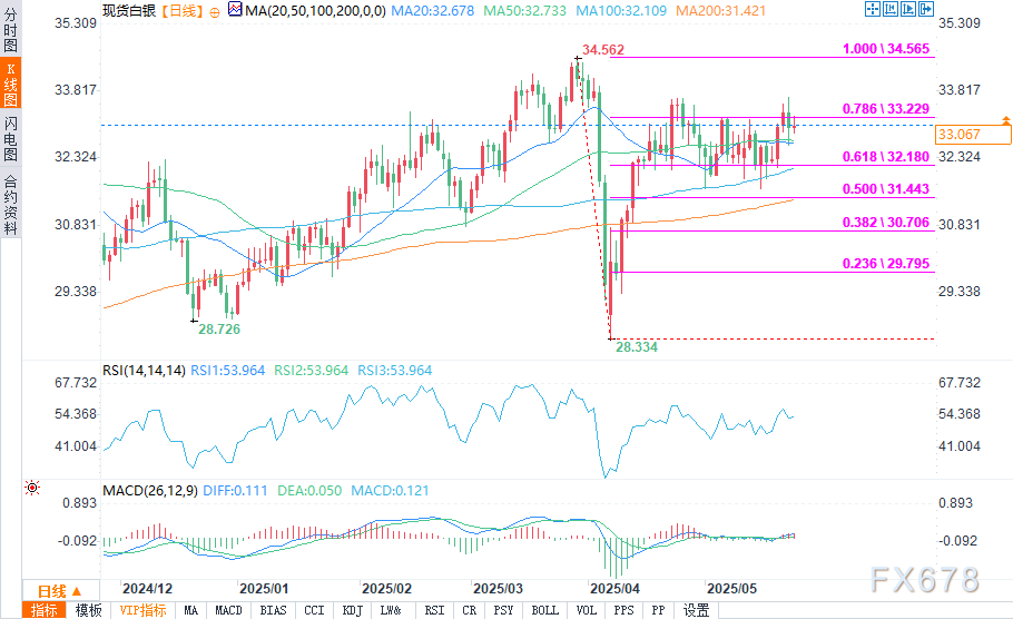 白银分析:在50日均线附近逢低买入,还是等待上破33.70美元