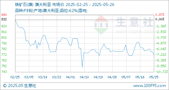 5月26日生意社铁矿石(澳)基准价为772.56元/吨