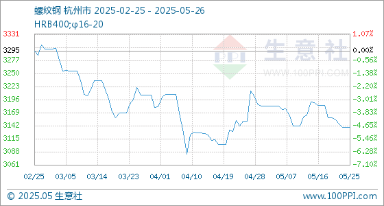 5月26日生意社螺纹钢基准价为3138.56元/吨