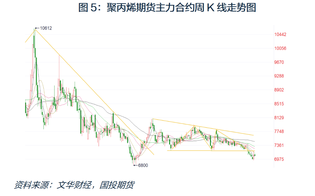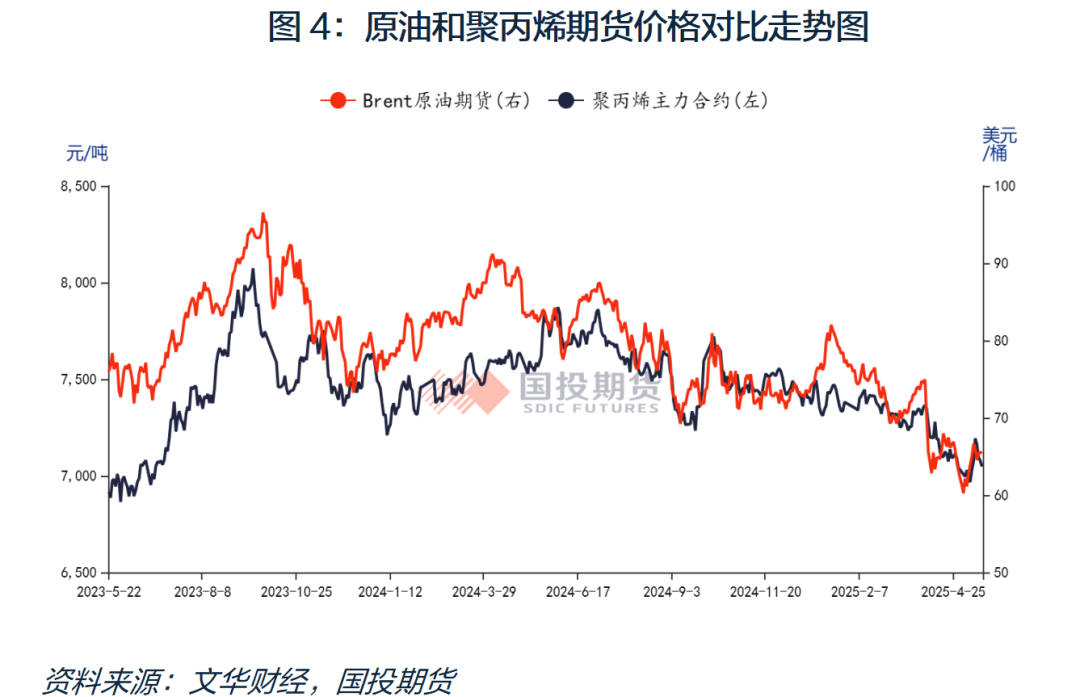 今年以来聚丙烯价格延续下跌行情,扩能压力之下,供应端持续施压。然而需求修复力度弱于预期,供需增速不匹配导致供需矛盾加剧,价格持续承压。原油同样面临供需两端的压力,成本端的不断坍塌,也是导致聚丙烯下跌的重要因素。
