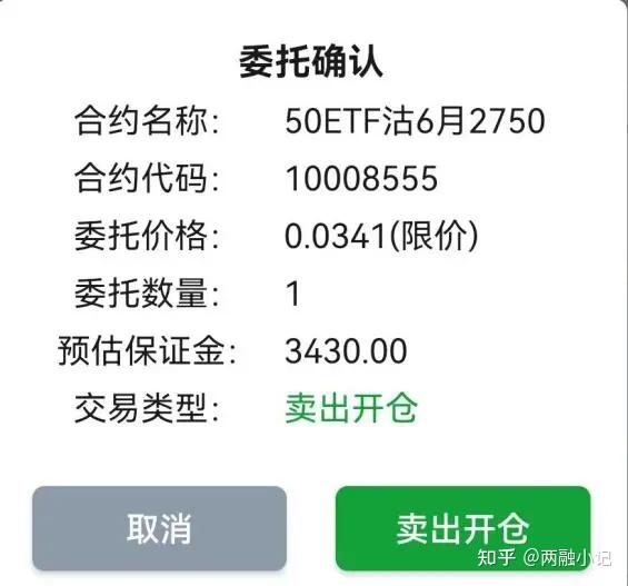 如下图所示,假设卖出开仓一张6月的50ETF认沽合约,预估保证金是3430元。