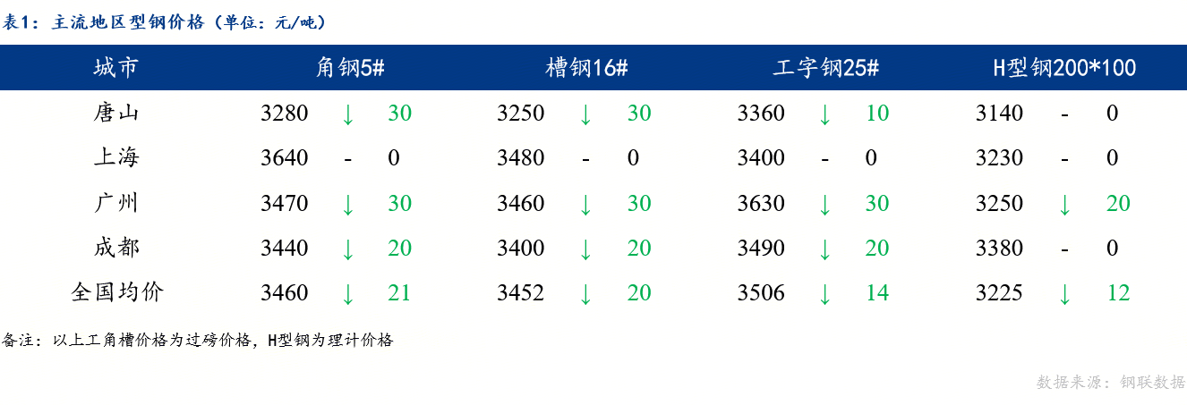 目前从盘面来看,期螺持绿下行,原料成本下移,型钢底部支撑不足,市场交投情绪偏低,成交偏弱,受需求端的影响,目前成品材价格难有上涨空间。综合来看,预计明日全国型钢市场价格弱稳,整体优惠力度或有增加。
