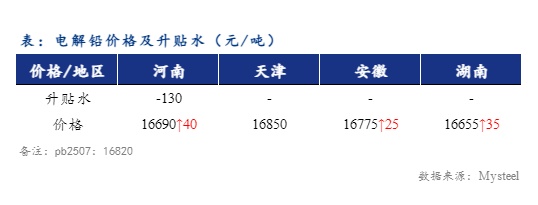 5月26日全国市场1#铅锭价格报16675元/吨,较上一交易日上涨25元/吨。现货方面,河南济源市场持货商对沪铅2507合约报贴水130元/吨出厂,贴水有所收窄;湖南市场炼企对1#铅锭价格贴水企稳,维持报贴水20-30元/吨出厂;江西市场炼企对1#铅锭价格升水130元/吨出厂。安徽市场炼企对1#铅锭价格升水80元/吨出厂。