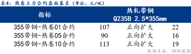 26日市场热卷10合约与355带钢价差正向扩大19元/吨 ,热卷05合约与355带钢价差正向扩大16元/吨。