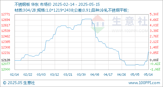 5月15日生意社不锈钢板基准价为12257.14元/吨