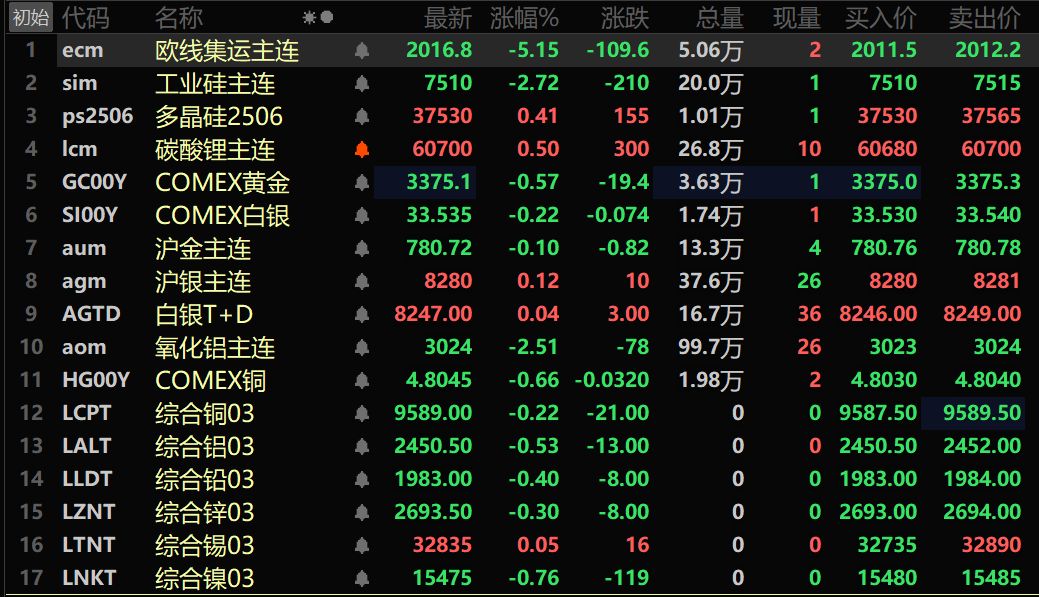 基本金属多窄幅波动工业硅、氧化铝、铁矿跌超2%欧线集运跌超5%【SMM午评】