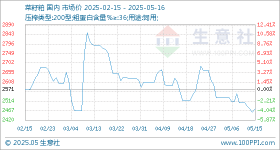 5月16日生意社菜籽粕基准价为2476.67元/吨