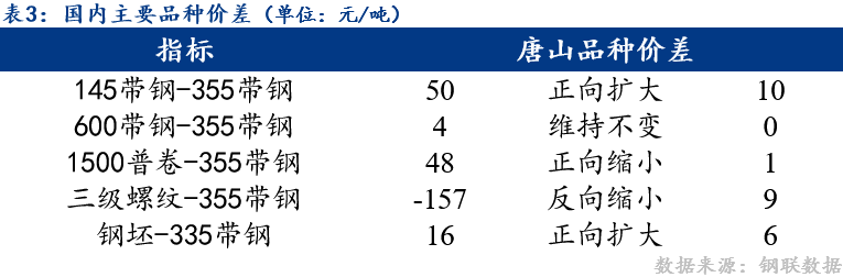 355mm带钢与钢坯市场价格价差正向扩大6元/吨,螺带差反向缩小9元/吨。