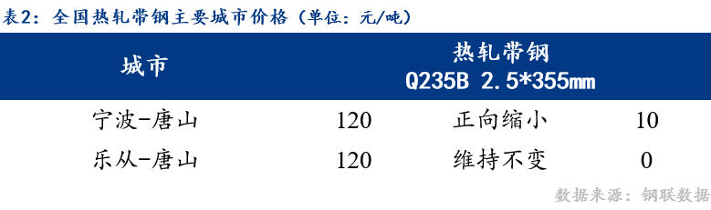 目前华东-华北区域价差正向缩小10元/吨,华南-华北区域价差维持不变。