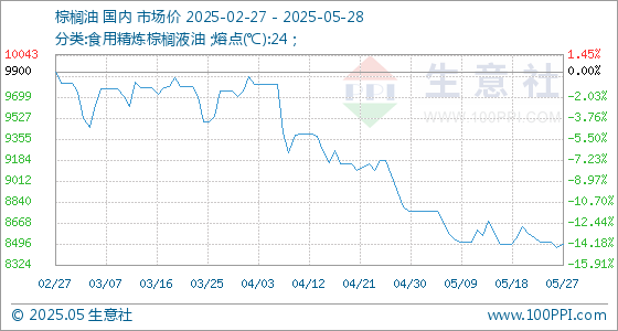 5月28日生意社棕榈油基准价为8488.00元/吨