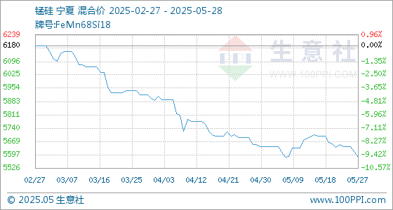 5月28日生意社锰硅基准价为5586.00元/吨