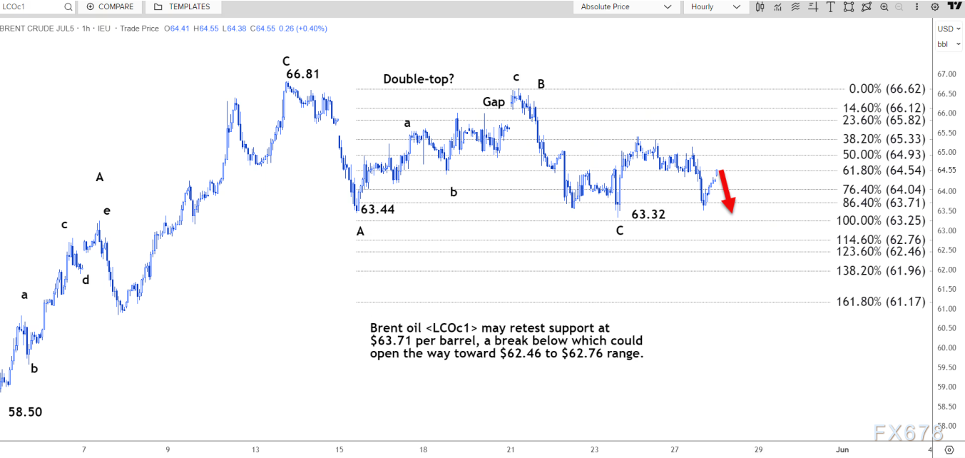 技术分析:布伦特原油或将重新测试63.71美元的支撑位