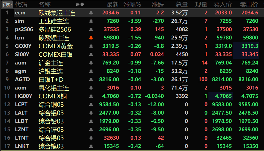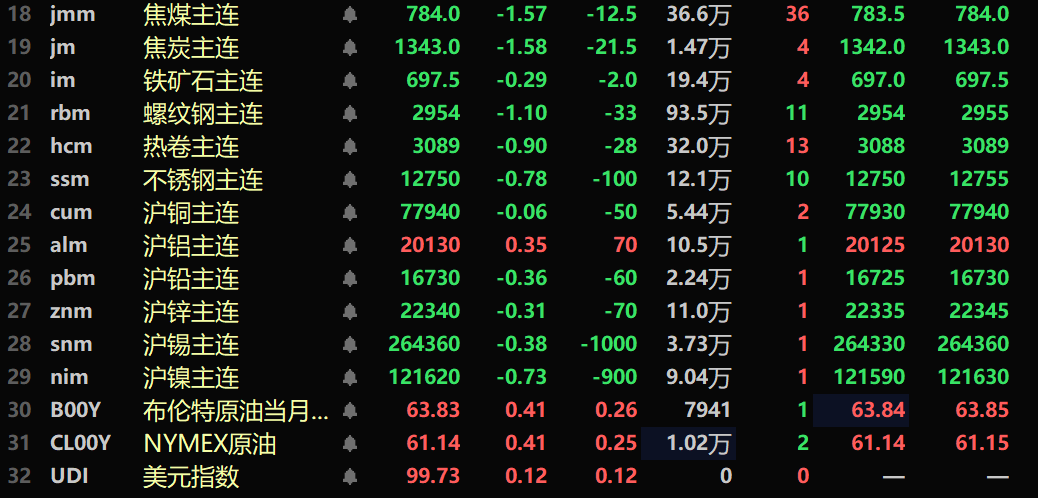金属多飘绿工业硅跌3.59%双焦、碳酸锂、螺纹钢跌幅居前【SMM午评】