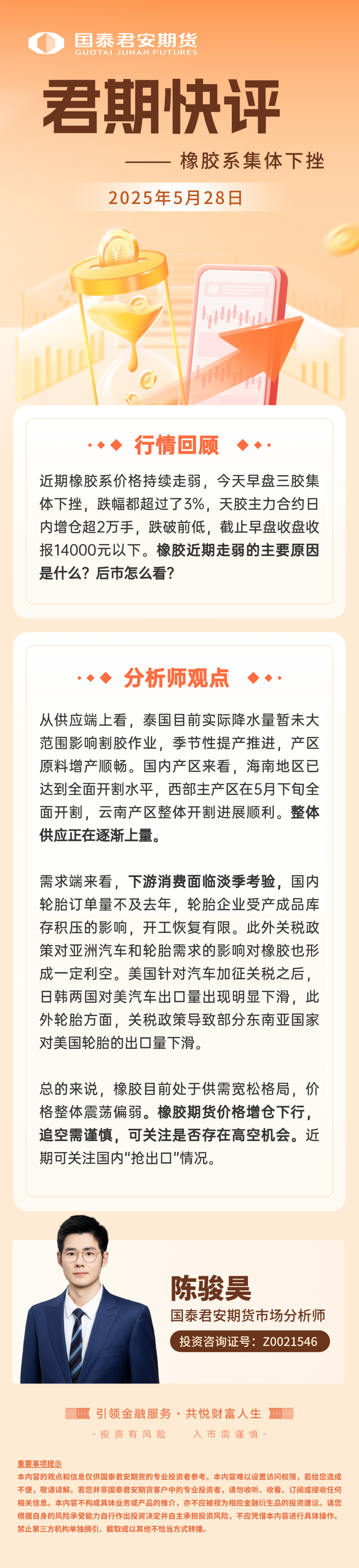 橡胶系期货午后继续下挫,丁二烯橡胶主力合约日内走低4.00%,现报10775元/吨。20号胶主力合约日内跌超3%,现报11770元/吨。橡胶主力合约日内跌近2%,现报13400元/吨。涨跌都能赚 盈利就能离场!点击开通期货“T+0、双向交易”特权!>>>