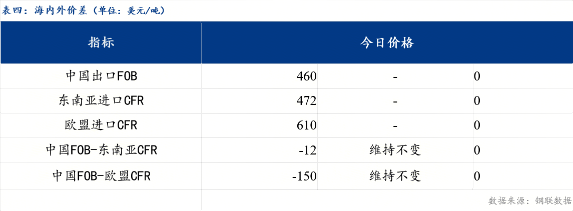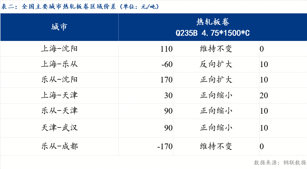 从区域价差来看,华东与东北价差110元/吨,较上一交易日持平;华东与华南价差-60元/吨,较上一交易日反向扩大10元/吨;华南与华北价差为90元/吨,较上一交易日正向缩小10元/吨 。