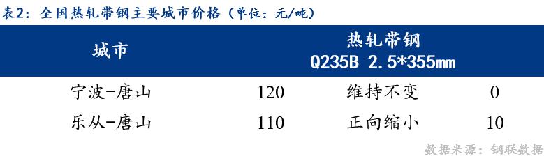 355mm带钢与钢坯市场价格价差正向缩小5元/吨,螺带差反向扩大9元/吨。