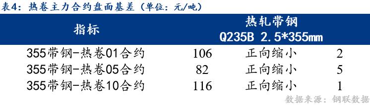 28日市场热卷10合约与355带钢价差正向缩小1元/吨 ,热卷05合约与355带钢价差正向缩小5元/吨。
