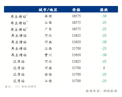5月28日,再生铅部分市场价格调整25-50元/吨,其中市场还原铅价报15625-15700元/吨,再生精铅价格报15625-15700元/吨出厂,含税价格集中报16575-16600元/吨出厂。