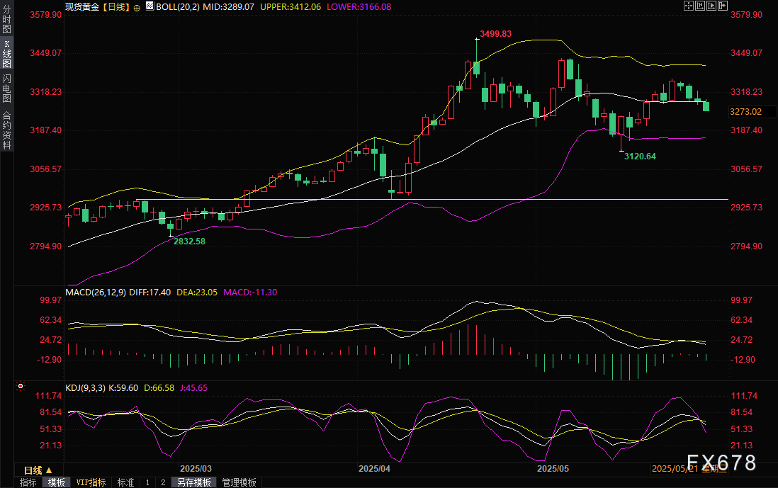 汇通财经APP讯——周四(5月29日)亚市早盘,现货黄金震荡下跌,一度跳水逾30美元,失守3260关口,截止07:37,刷新逾一周低点至3256.32美元/盎司,因美国联邦法院称特朗普解放日关税是越权行为,市场对国际贸易局势的担忧情绪降温。周三金价下跌0.36%,收报3288.44美元/盎司,为连续三个交易日收跌,市场乐观地认为贸易协议将改善美国经济前景,打压黄金的避险需求,而且美元持续反弹,美联储会议纪要对降息仍持谨慎态度。