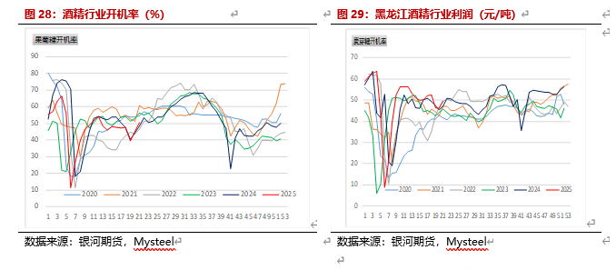 酒精行业,5月由于玉米现货上涨,酒精利润亏损仍较大,行业开机率降低。部分企业由于玉米库存较低,企业利润亏损较大,深加工继续停机。截止5月23日,黑龙江利润为-88元/吨,河南酒精利润为-877元/吨。预计6月玉米现货仍会上涨,开机率会下降,酒精利润可能有所减少。