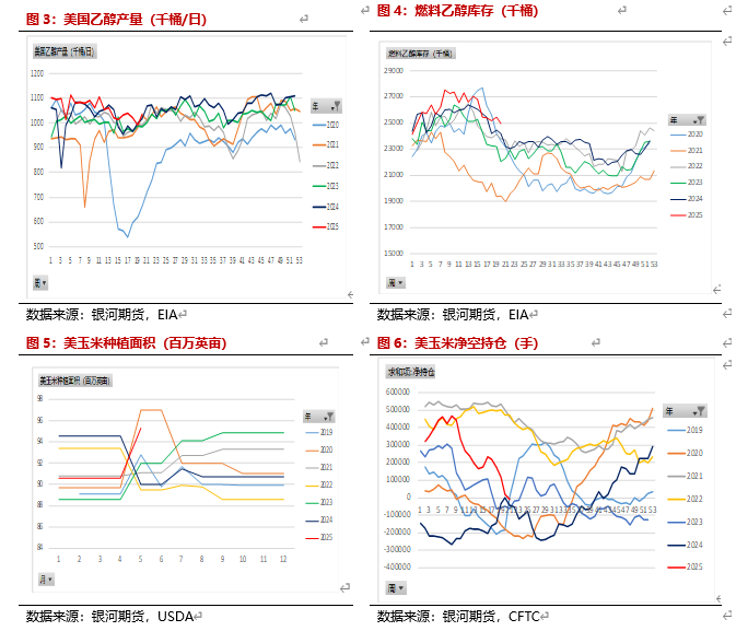 5月报告美玉米新季面积上调较多,单产179.3蒲/英亩。24/25年美玉米面积9060万英亩左右,25/26年度美玉米种植面积上调到9530万英亩。美国加关税可能对美玉米出口受影响,美玉米后期面积仍存在较大不确定性。美玉米处于种植期,截止5月18日,美玉米种植进度78%,高于5年均值的73%。6月美玉米容易炒作天气,美玉米仍有上涨空间。