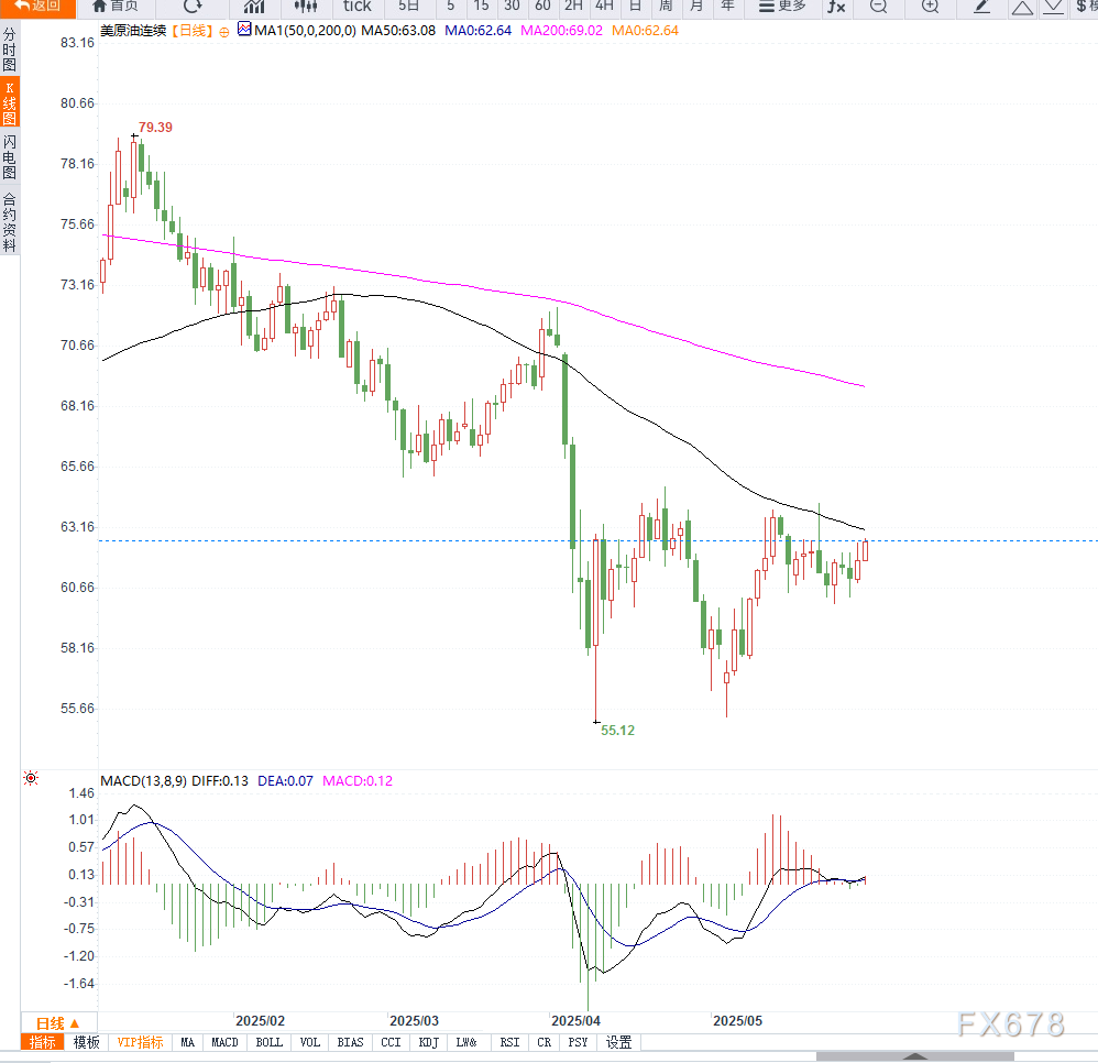 从美原油(WTI)日线图来看,当前价格已突破短期震荡区间上沿,并站稳在60日均线之上,显示出强势反弹迹象。MACD指标形成金叉,红柱持续放大,表明多头动能逐步增强。