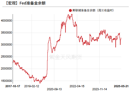 上周三美联储准备金余额为3.284万亿美元,较前一周回升480亿。