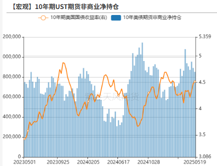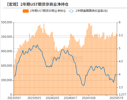截至5.20的数据,长短端美债利率持仓分化,2年期UST期货非商业净持仓空头增加45099手至1267331手;10年期UST期货非商业净持仓空头减少38920手至851431手。