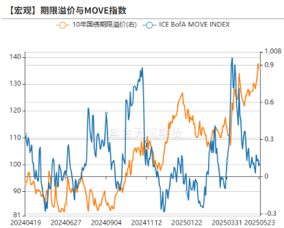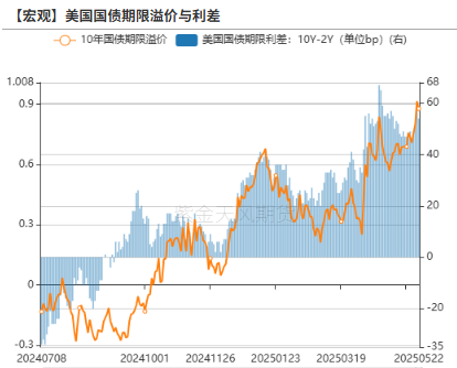 市场充分计价了“大美丽法案” 下一步的负面进展:“大美丽法案”下一步移交参议院审议后,市场已经充分预期参议院将反对削减Medicaid开支,使得法案更具扩张性。这限制了财政前景进一步恶化的可能性。从数据指标来看,由财政风险驱动的长期美债期限溢价更可能下降而非上升,因此10年期美债收益率进一步大幅上行的可能性较低。