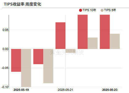 5年期和10年期TIPS收益率走高,5年期TIPS收益率收于1.68%,较前周上行4bps;10年期TIPS收益率收于2.18%,较前周上行9bps 。