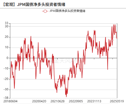 截至5.19当周,JPM国债净多头投资者情绪19,较前一周持平。