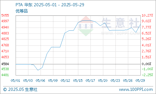 5月份PTA装置集中检修,下旬PTA装置陆续重启,截止月末PTA行业开工率在78%附近。价格方面,5月份国内PTA现货市场行情呈现先涨后跌态势,截止5月29日华东地区PTA市场均价在4972元/吨,较月初上涨8.47%。随着盘面加工费修复之后,6-7月装置检修落实执行情况或不及预期。新产能如虹港石化三期和海伦石化三期将在6-8月投产,远期供应偏宽松为主。