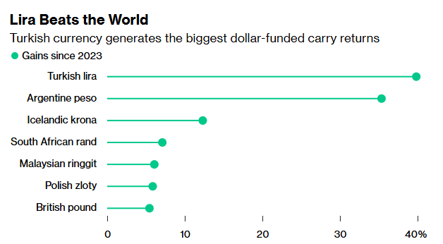 5 月份里拉兑美元的汇率下跌了约 1.6%,而上个月则下跌了 1.4%。在过去两年中,高利率以及经消费者通胀调整后的里拉表现强劲,导致了以套利交易形式的大量资金流入。这是一种投资策略,即交易商借入低收益货币以投资于其他领域。