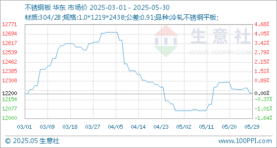 5月30日生意社不锈钢板基准价为12207.14元/吨