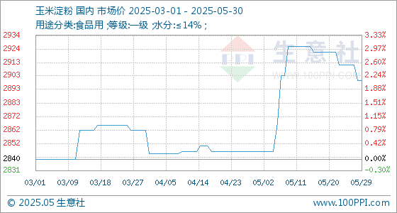 5月30日生意社玉米淀粉基准价为2900.00元/吨