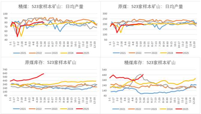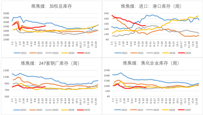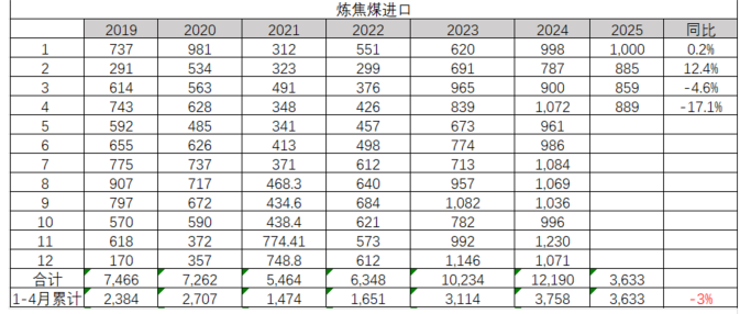 今年日均铁水产量从年初逐步增长到245万吨附近,近两周开始逐步回落。年初至今来看,高铁水下其实焦煤的需求通过比去年是好转不少,但是今年的供应同样是比去年增加更多。