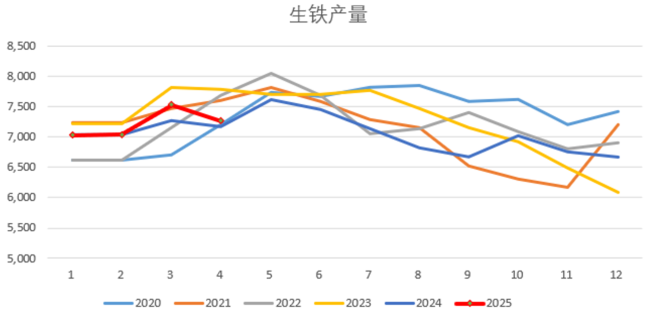往后看,今年铁水产量前期较高,但是近几年铁水年度产量基本小幅下降,这个和钢铁行业格局相关,钢铁需求跟随房地产逐步走弱,对应产量也是逐步下降。另一方面,国家这几年也在进行粗钢产量调控和再次供给侧改革。因此,上半年过高的铁水产量下半年很难持续。
