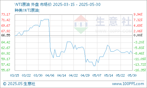 5月份原油市场先跌后涨,截止29日,美国WTI原油期货主力合约结算价报60.94美元/桶,布伦特原油期货主力合约结算价报64.15美元/桶。5月初原油市场大幅走低,主要原因是欧佩克+增加产量超预期,该消息利空国际油价,原油市场大幅走低。后期随着美国加大对某国的石油限制问题,以及中东地区问题再度紧张,中美关税问题缓解,国际油价走势上涨,整体来看5月国际油价震荡走高,原油支撑较强,国内汽柴油价格行情尚可。
