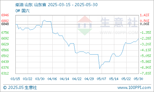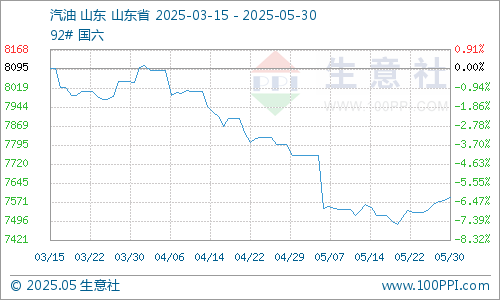 据生意社商品行情分析系统,5月份山东地炼汽柴油价格行情走势分化,截止月末国内92#汽油价格为7586.83元/吨,5月份价格下滑2.14%;国内0#柴油价格为6695.67元/吨,5月份价格走势上涨2.68%。