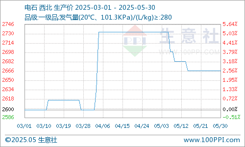 上游电石方面,5月份以来,电石价格持续下行,根据生意社监测的数据显示,5月以来电石跌涨幅为2.44%。整体来看电石缺乏利好指引,支撑作用有限,且随着下游PVC行情表现弱势,料电石价格近期或难有企稳好转。
