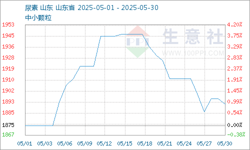 据生意社商品行情分析系统,截止5月30日,国内尿素市场参考均价为1892元/吨,较5月1日参考均价1875元/吨,国内尿素市场价格上涨幅度为0.91%。