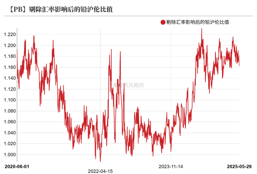 截至5月29日,沪伦比值小幅下行至8.4277,除汇比1.1826。