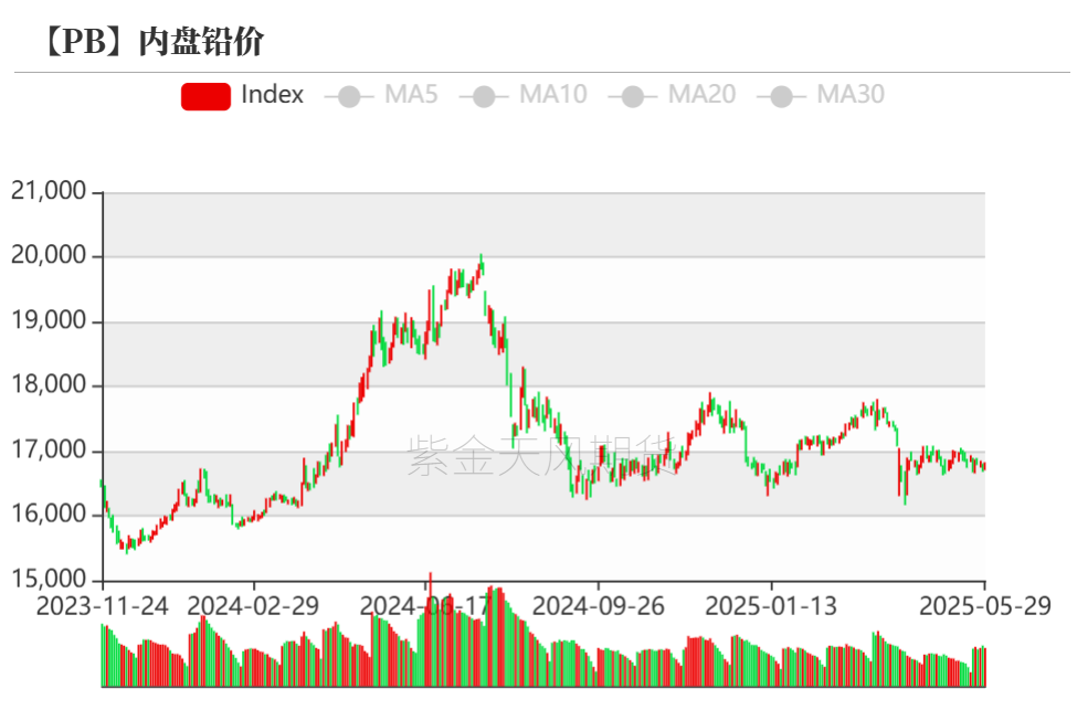 上周沪铅主力合约开于16885元/吨,周内高点16985元/吨,低点16655元/吨,收于16860元/吨,周涨幅-0.06%;