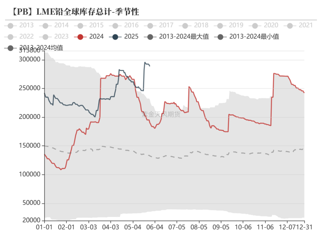截至5月28日,LME铅锭库存总计报29.11万吨,环比减少1325吨。