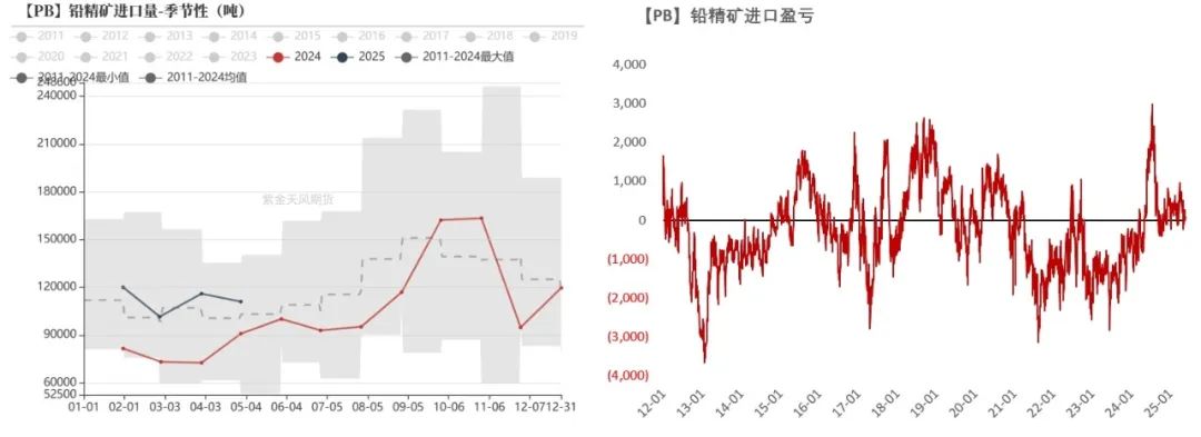 2025年4月铅矿砂及其精矿进口量约11.0万吨,环比下降4.3%,同比增长22.1%;2025年1-4月累计进口31.8万吨,同比增长40.9%。