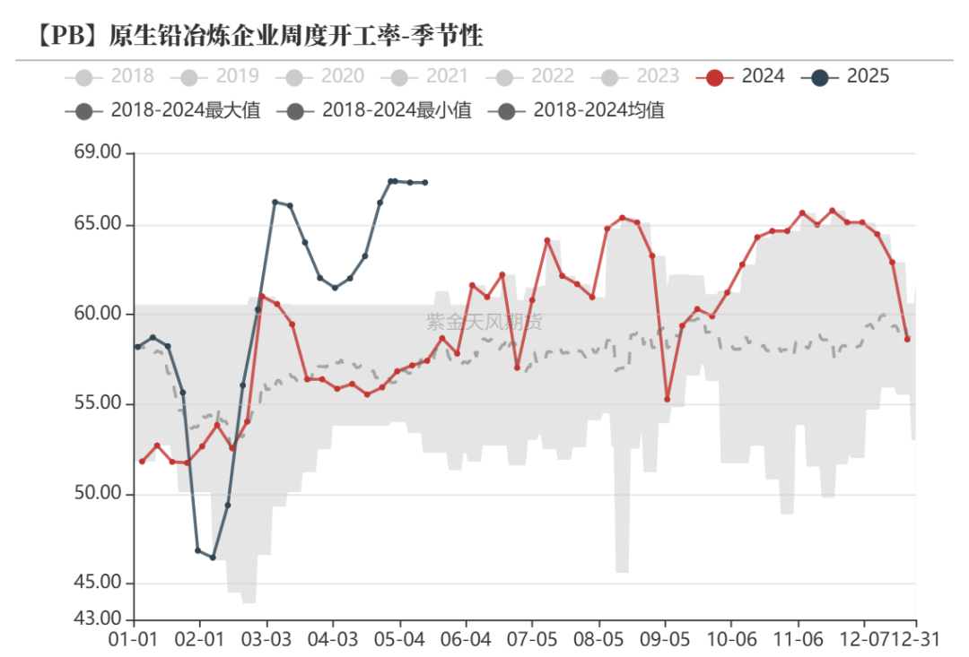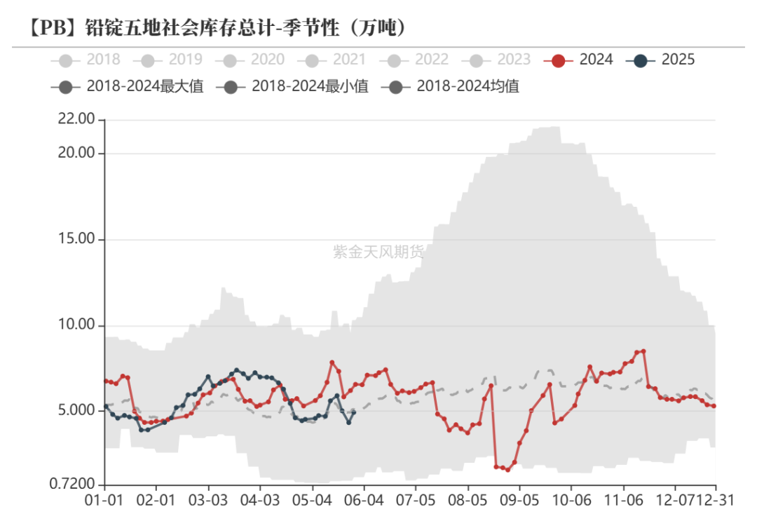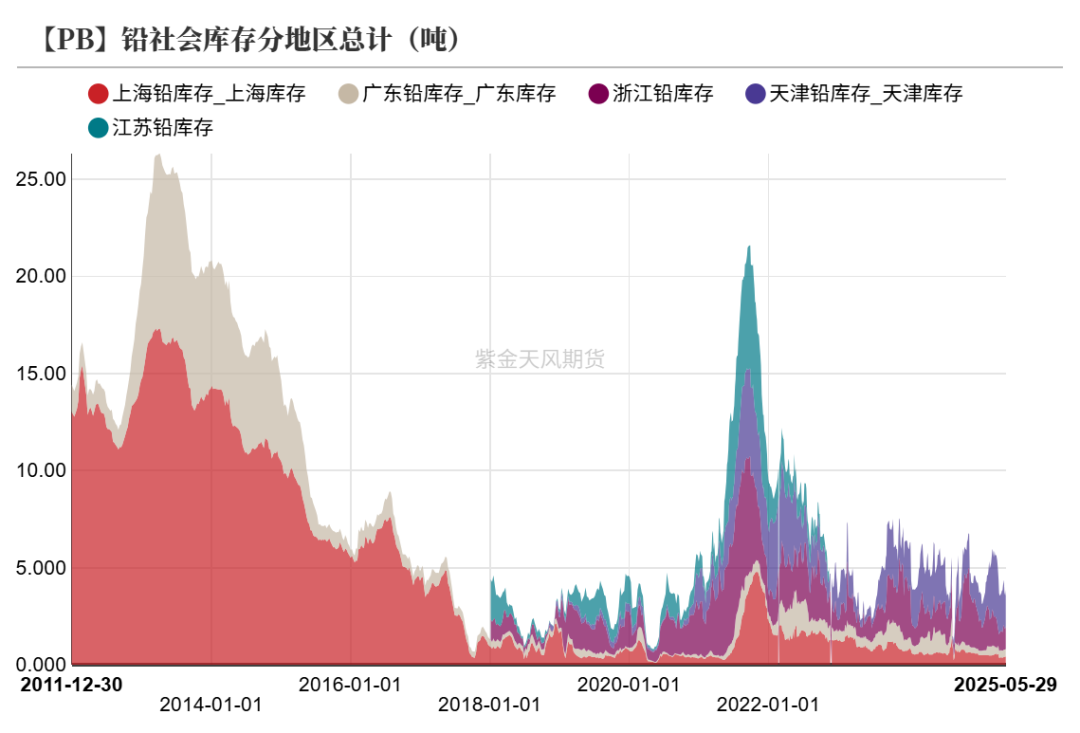 截至5月23日,SHFE铅库存总计4.84万吨,环比变化不大。