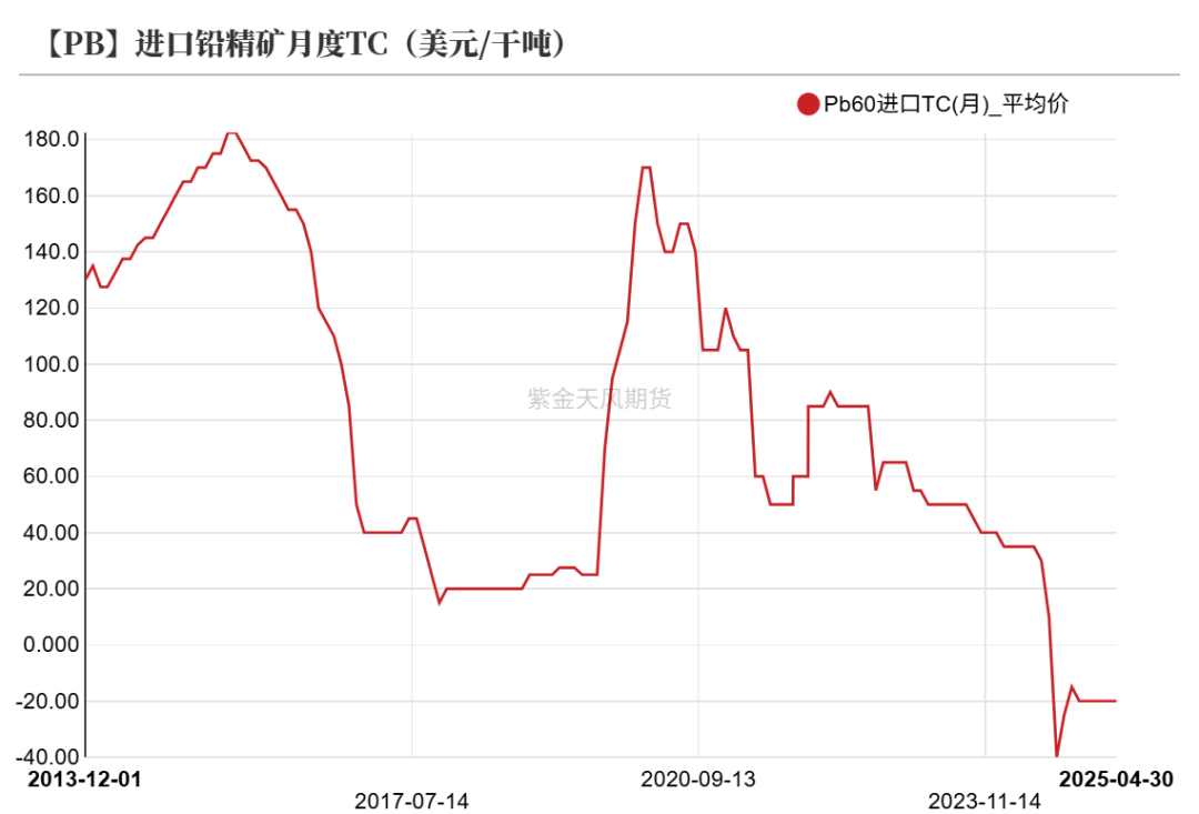进口矿TC【-20,-40】美元/干吨,含铅银精矿计价按【-40,-80】美元计价。