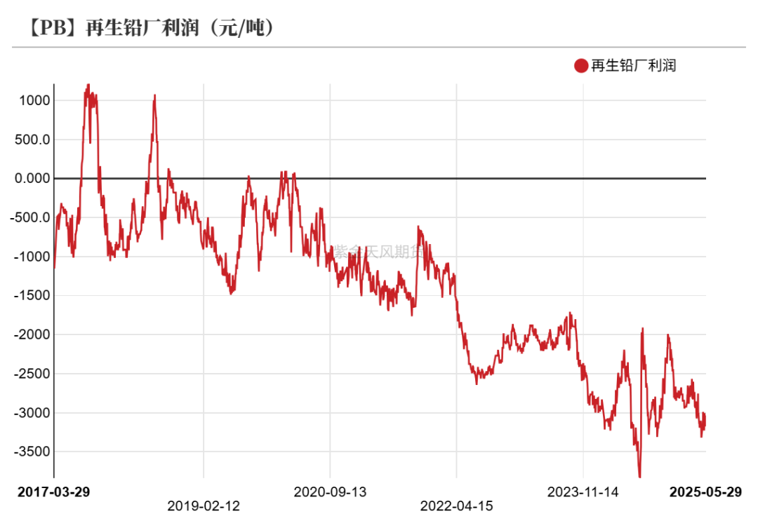 再生铅行业利润亏损940元/吨,亏损幅度环比增加,毛利润率下降。